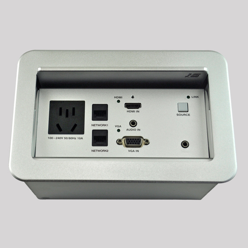 JS-Z370HD 可藏式接線盒是一款帶高清轉換及長距離傳輸的適合桌面安裝的掀蓋式接線盒,它上端連接的 VGA、音頻、HDMI 信號可通過單根 CAT5,5e 及 6 類網線輸出高清視頻信號、音頻信號、傳輸距離 70M,安裝布線便利;JS-Z300HD 采用了全數字式零壓縮技術,實現了視頻圖像點對點以及音頻的完美傳輸。最高支持 1920x1080P 60Hz 信號;支持HDCP 解碼(選配),可接